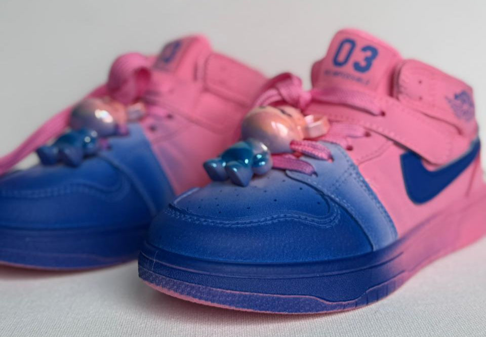 ✨ "Step into fun with these cute teddy-charm sneakers!"