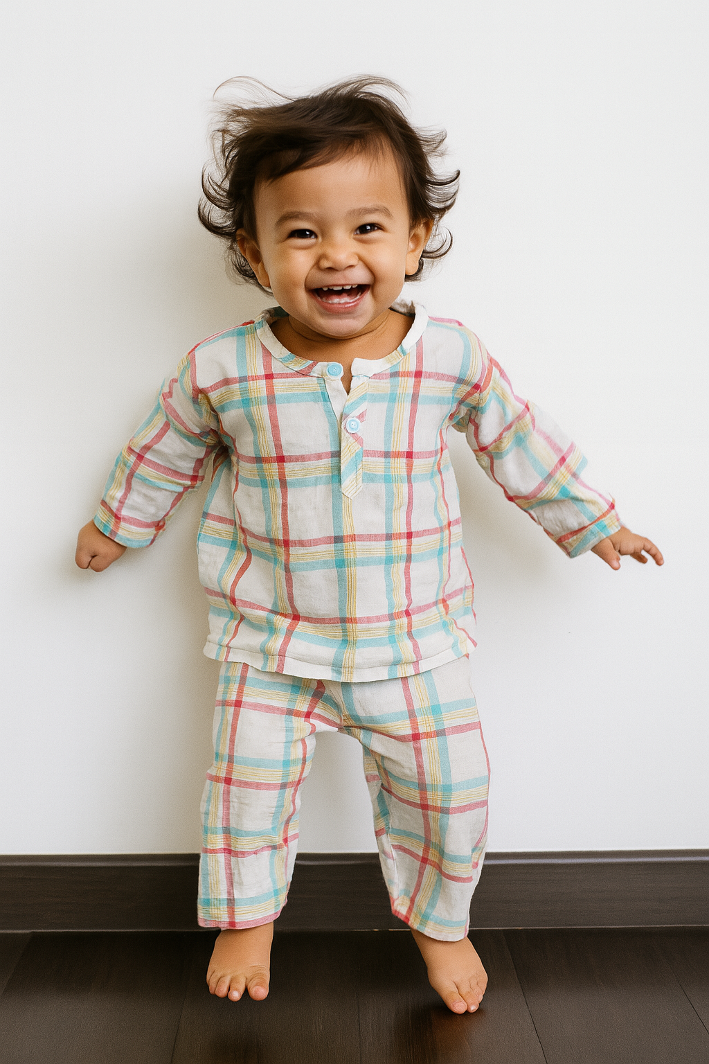 Let your little one jump into comfort! This charming plaid kurta-pajama set is made from breathable, soft cotton—perfect for playtime, naptime, and everything in between. The cheerful pastel checks and relaxed fit keep them happy and cozy all day long.