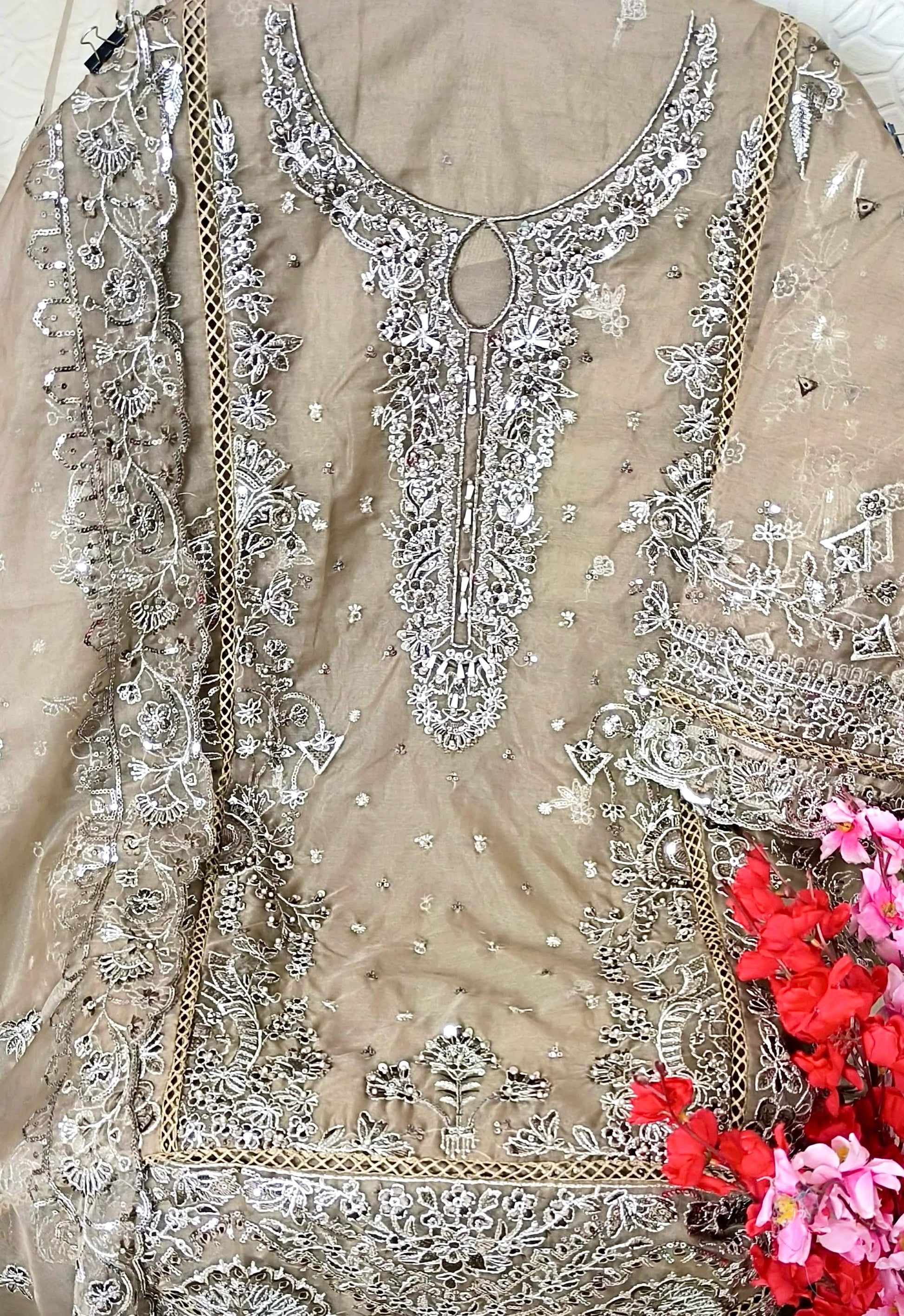 Crafted for those who appreciate elegance, this outfit features rich organza fabric, exquisite embroidery, and detailed handwork perfect for festive and wedding occasions.