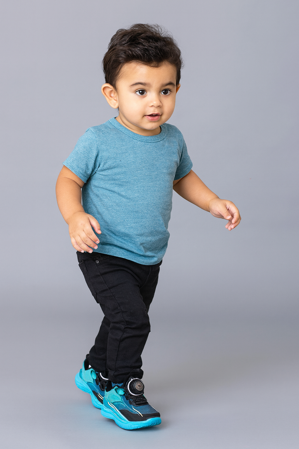 Bold turquoise-black sneakers with futuristic soles, perfect for your little explorer.