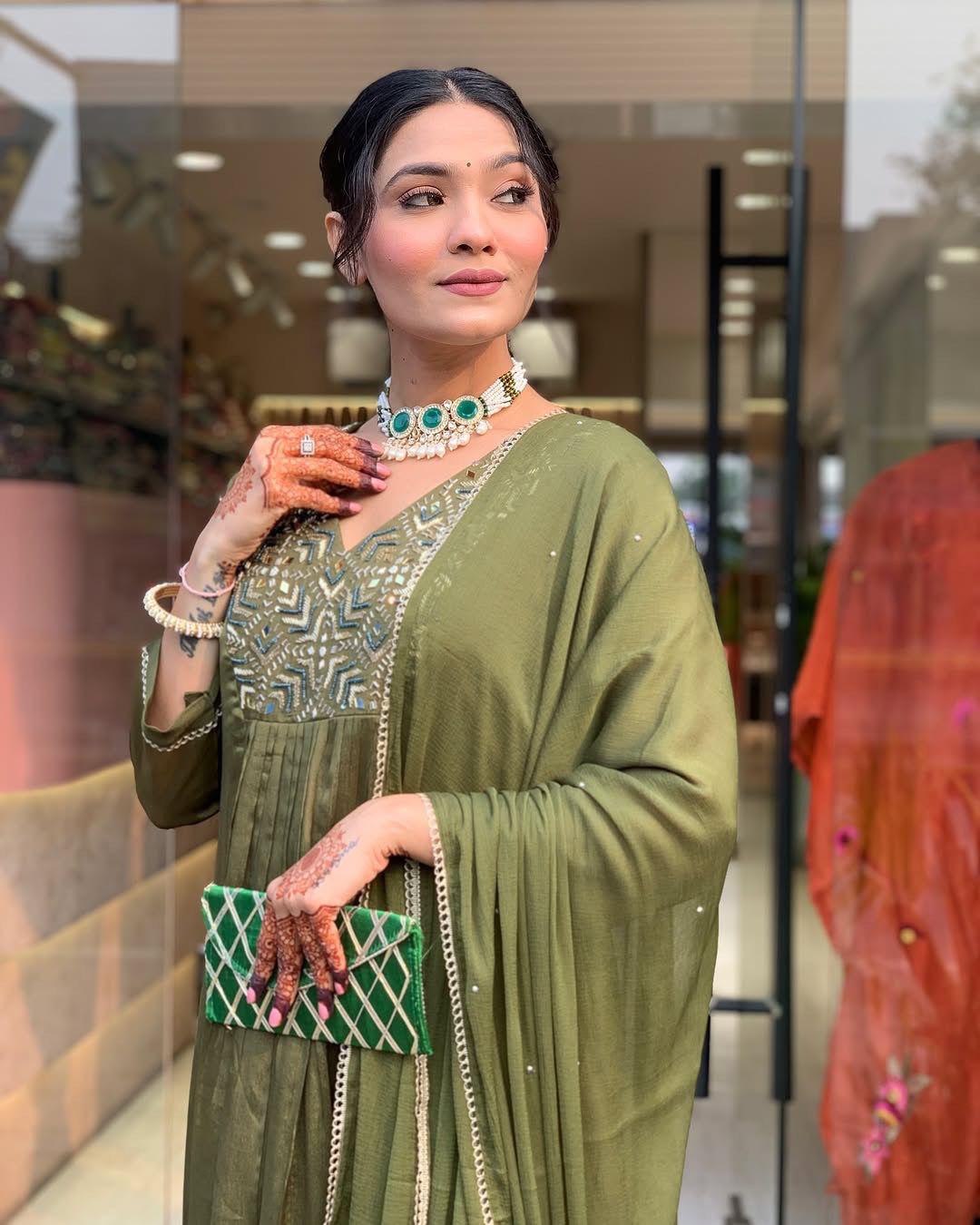Muted earthy green shade for a classy ethnic look
