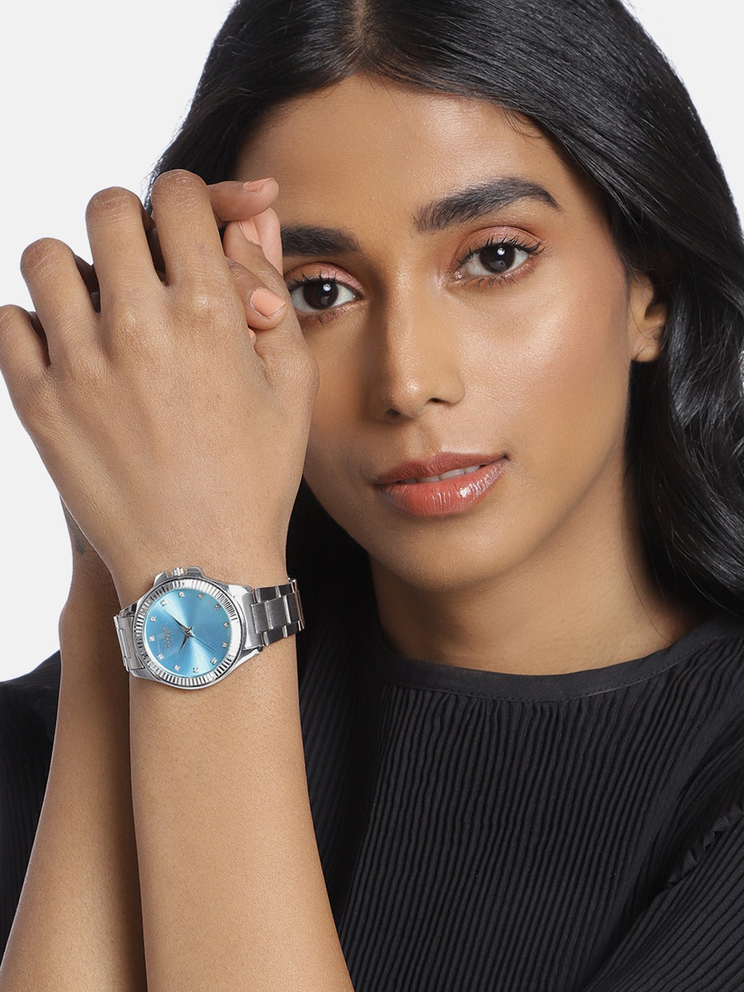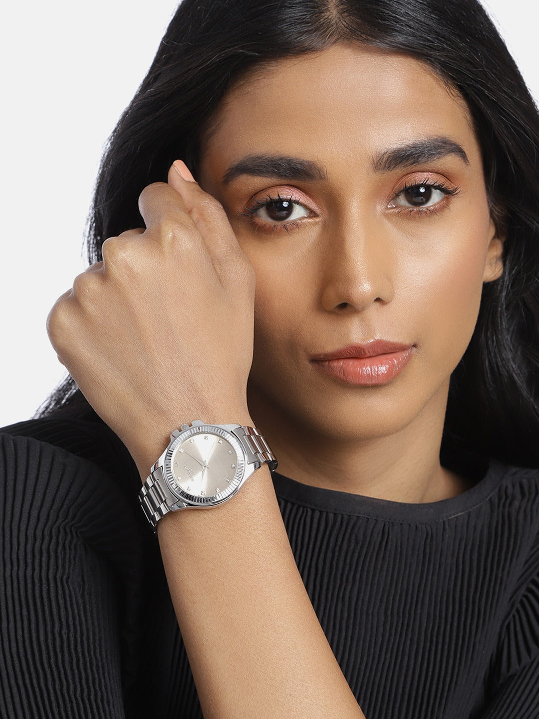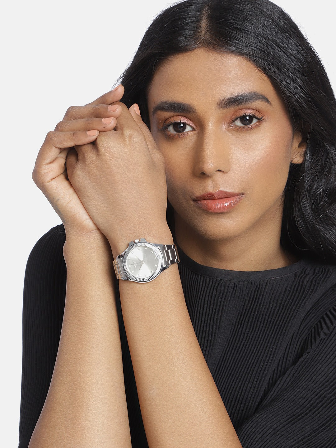 The 3-linked bracelet strap gives the watch a very sporty touch although the overall watch is sleek. It sits pretty on every wrist. The strap is of standard size and can be altered as per wrist size.