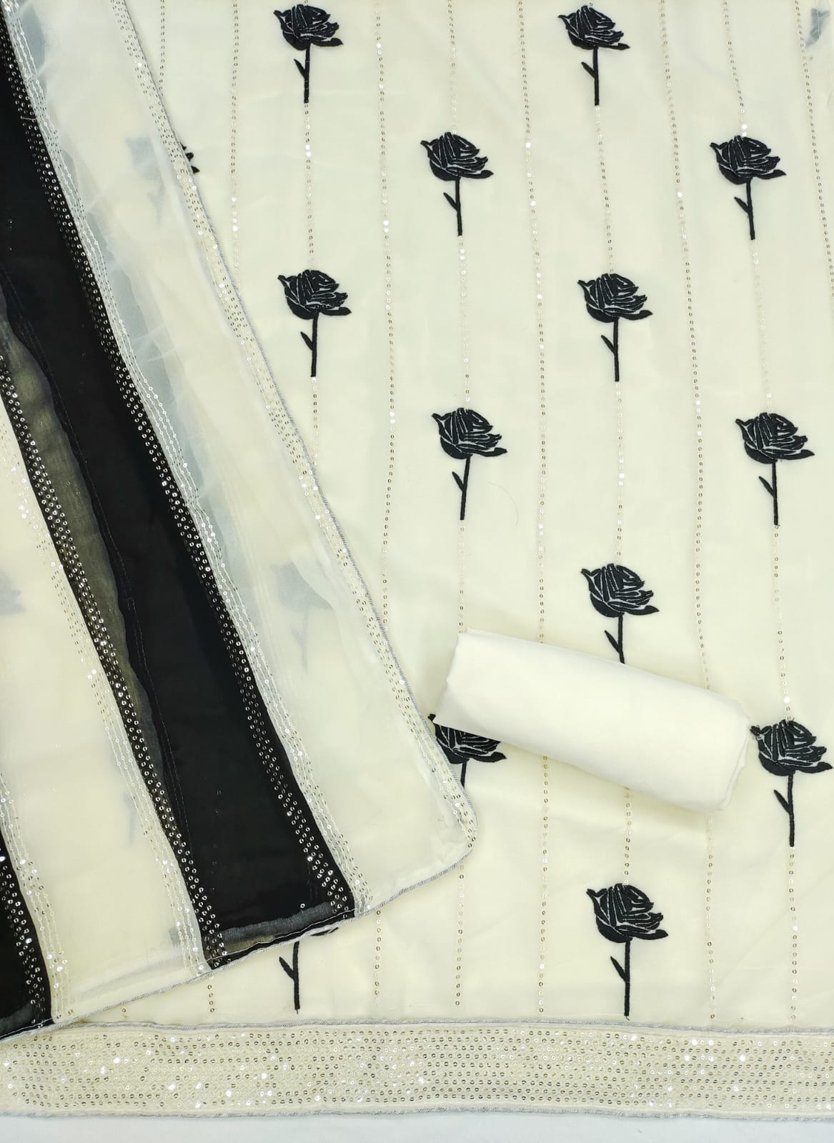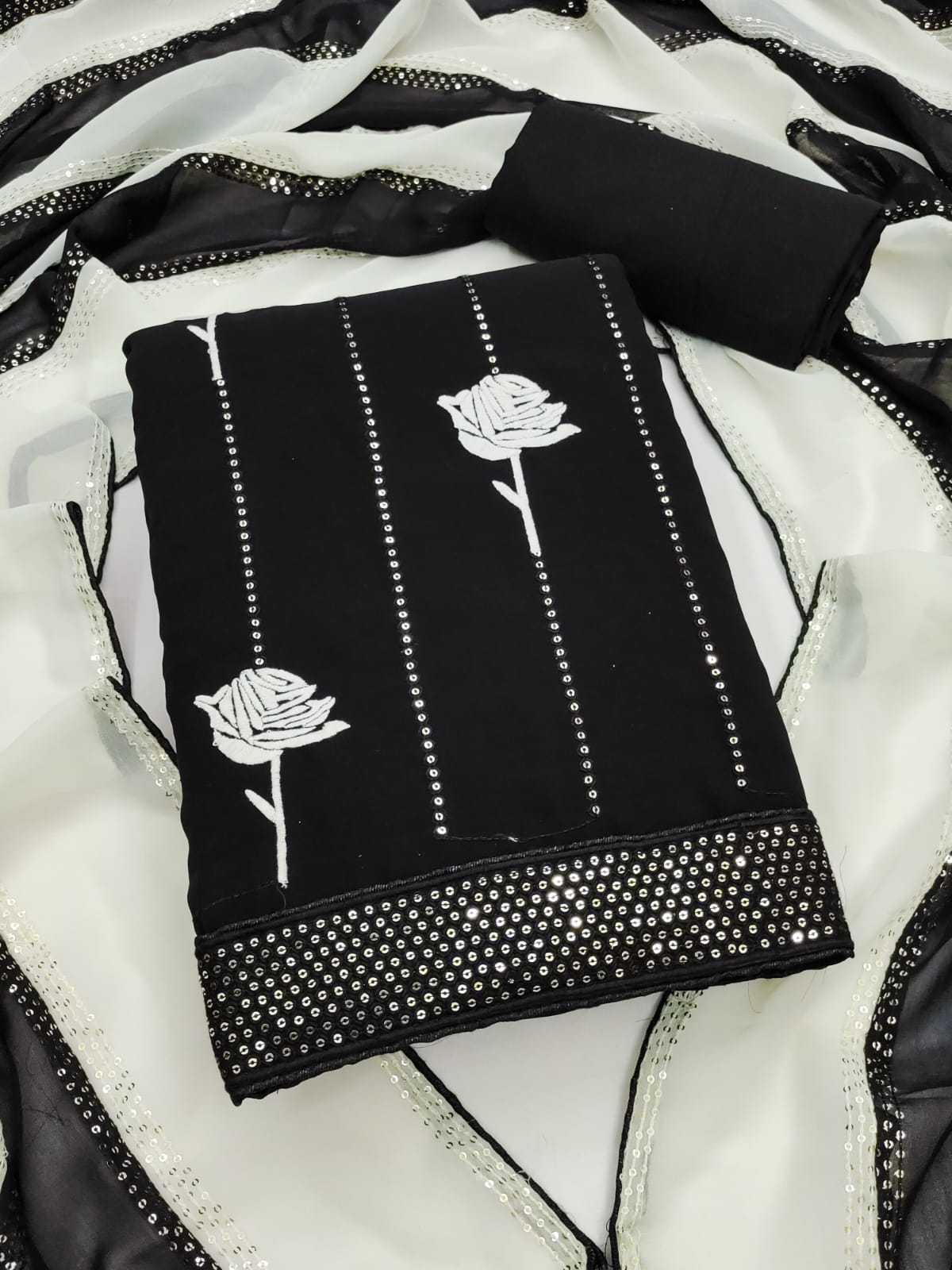 Georgette Embroidered Unstitched Dress Material Set - A1004