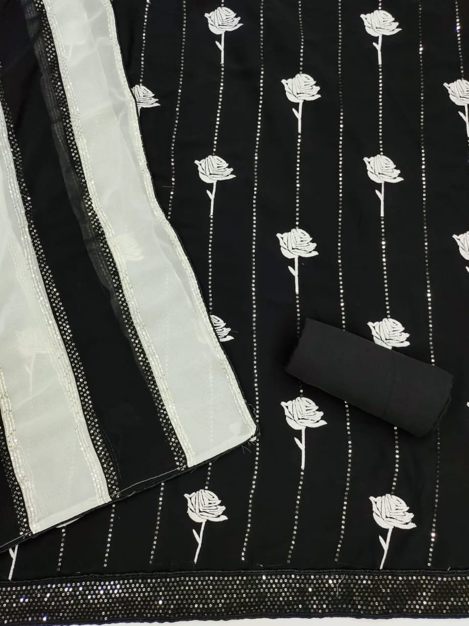 Top Fabric: Premium Georgette adorned with intricate embroidery and shimmering sequin work, offering a graceful drape and luxurious feel. (Cut: 2.10 meters)