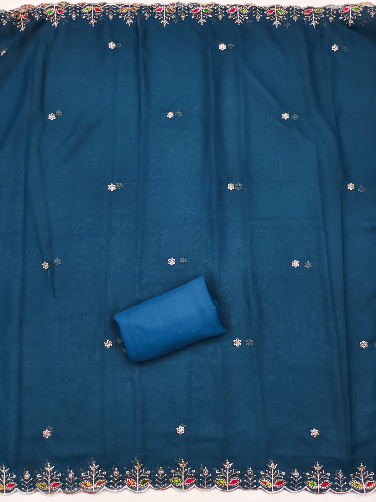 Inner and Bottom: Crafted from soft Crepe fabric, ensuring comfort and a graceful drape. Combined length: 3.5 meters.