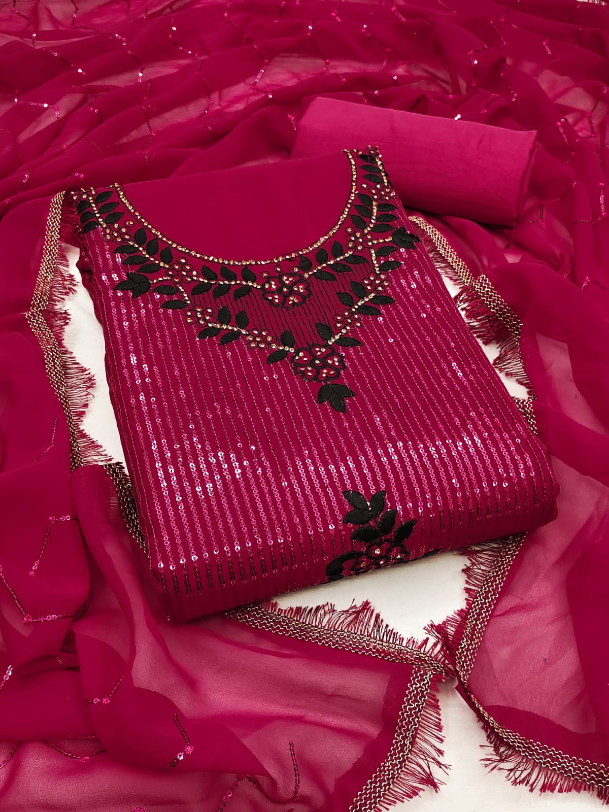 Dupatta: Matching Georgette dupatta featuring complementary embroidery, adding a cohesive and elegant finish to the ensemble.