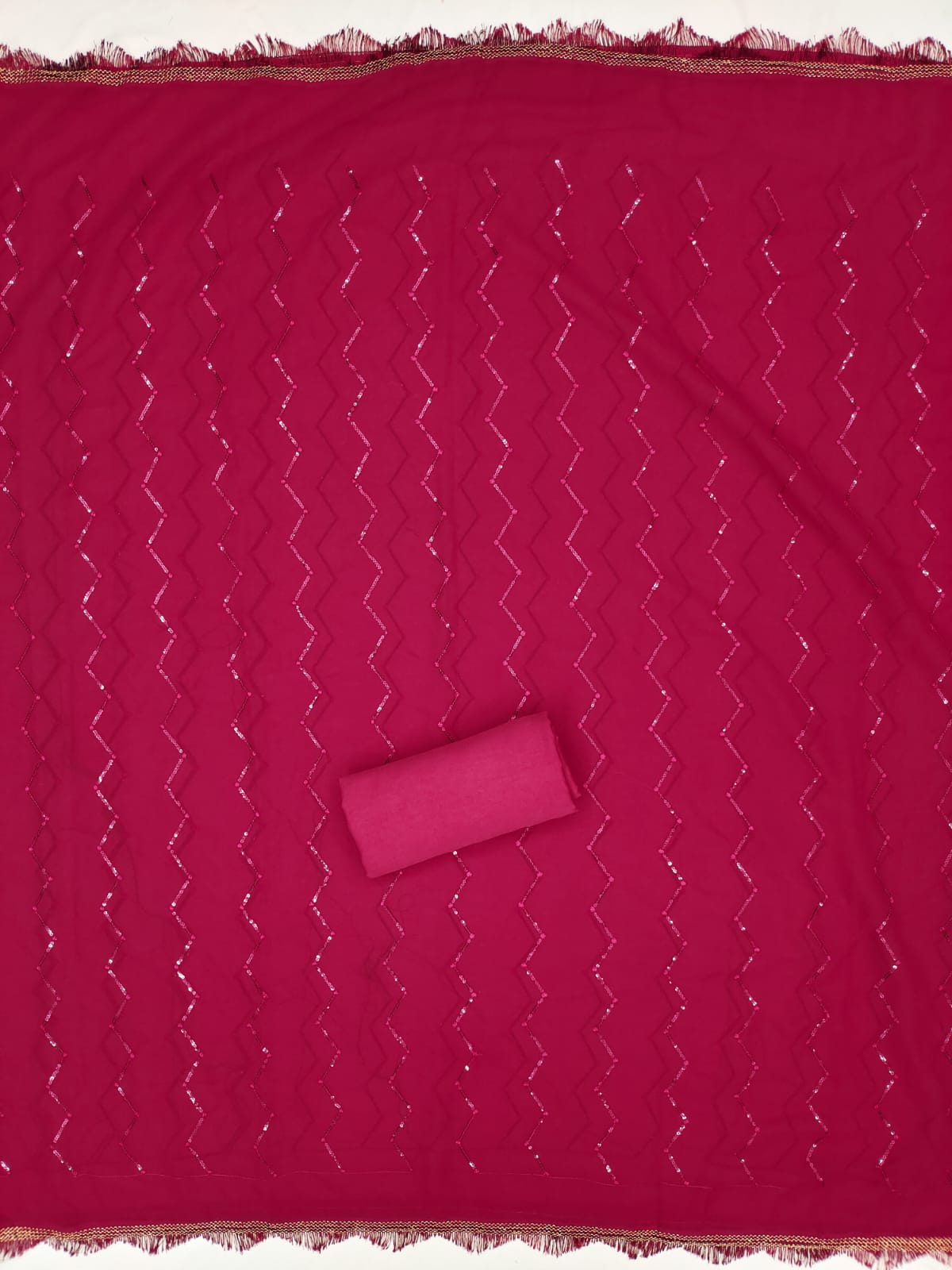Top Fabric: Premium Georgette adorned with delicate thread embroidery, offering a graceful drape and a touch of sophistication.