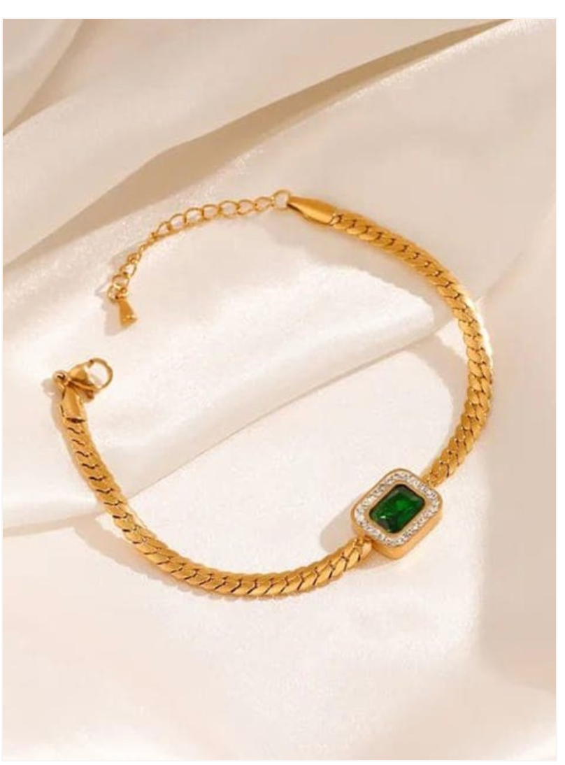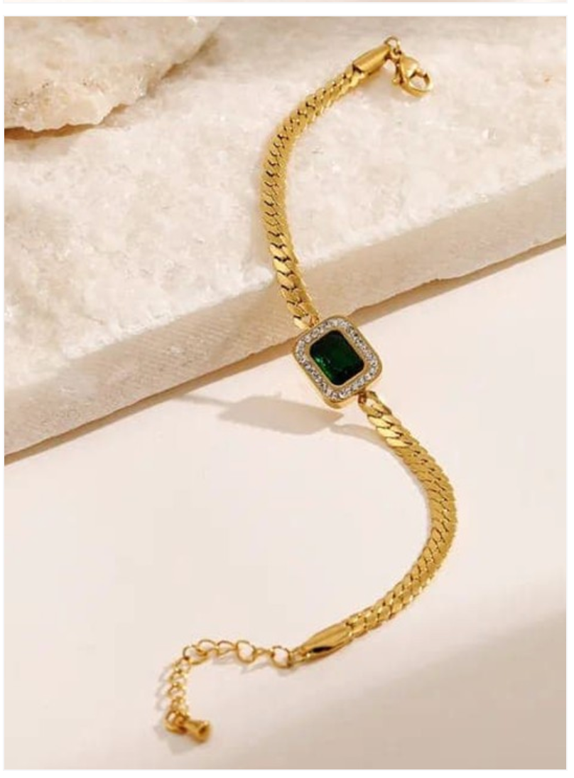 Emerald Green Curb 18K Gold Anti Tarnish Stainless Steel Bracelet