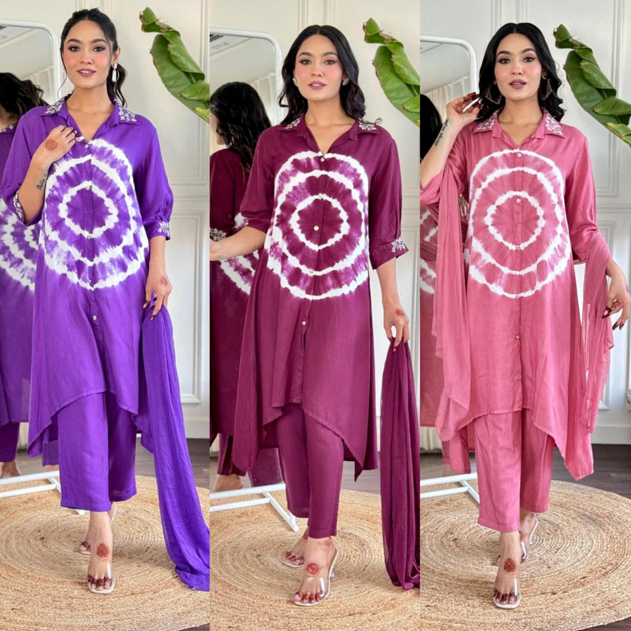 ✨ Seize the day in style with our oh-so-gorgeous tie & dye suit set, designed to make you shine at every festive moment. Crafted from premium rayon fabric, this set blends elegance with comfort—perfect for all-day wear.