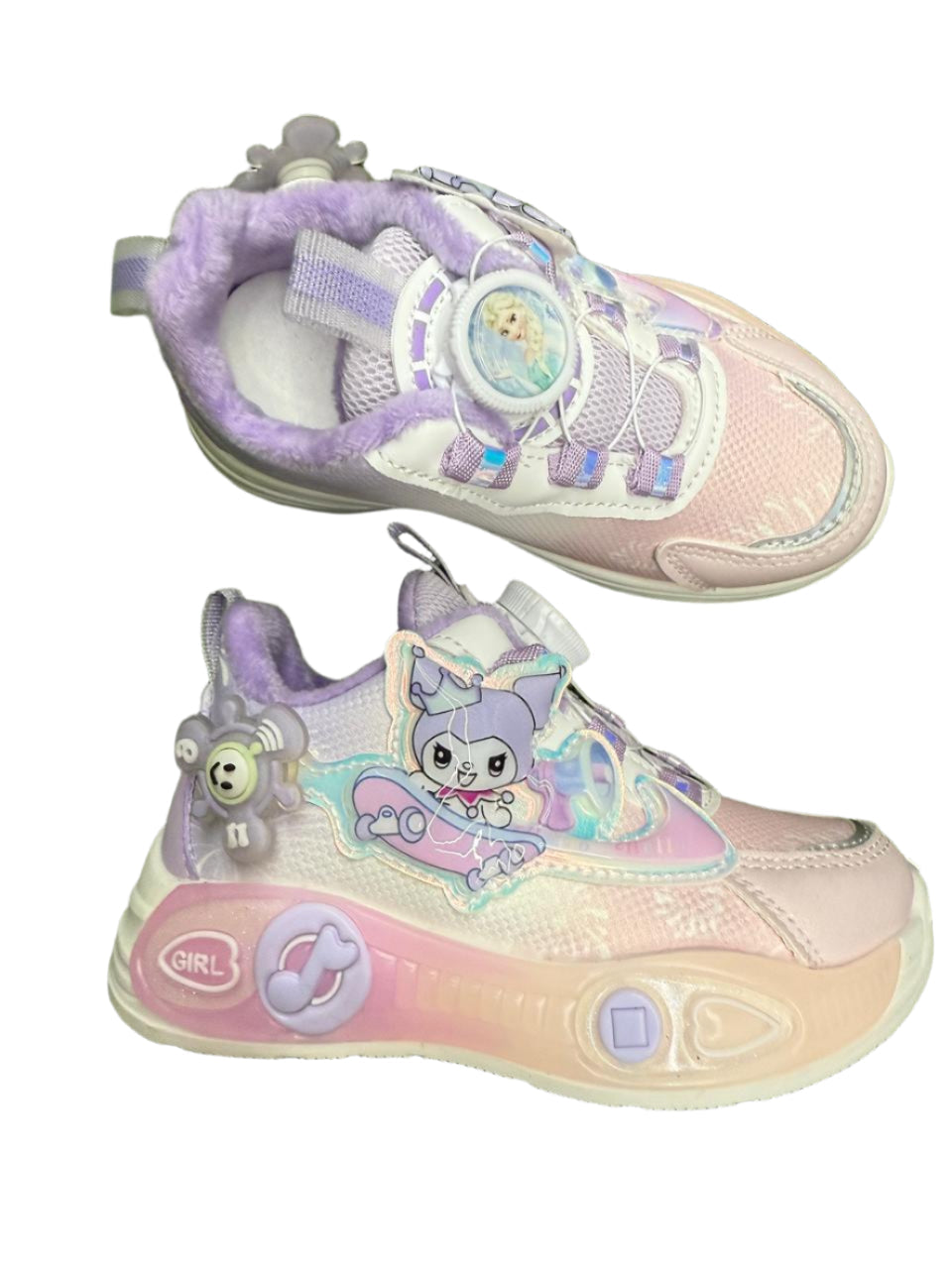 These adorable Frozen-themed kids sneakers are the perfect blend of comfort, charm, and magic! Designed with soft lavender and pastel pink tones, they're a dream come true for little princesses.