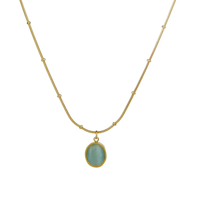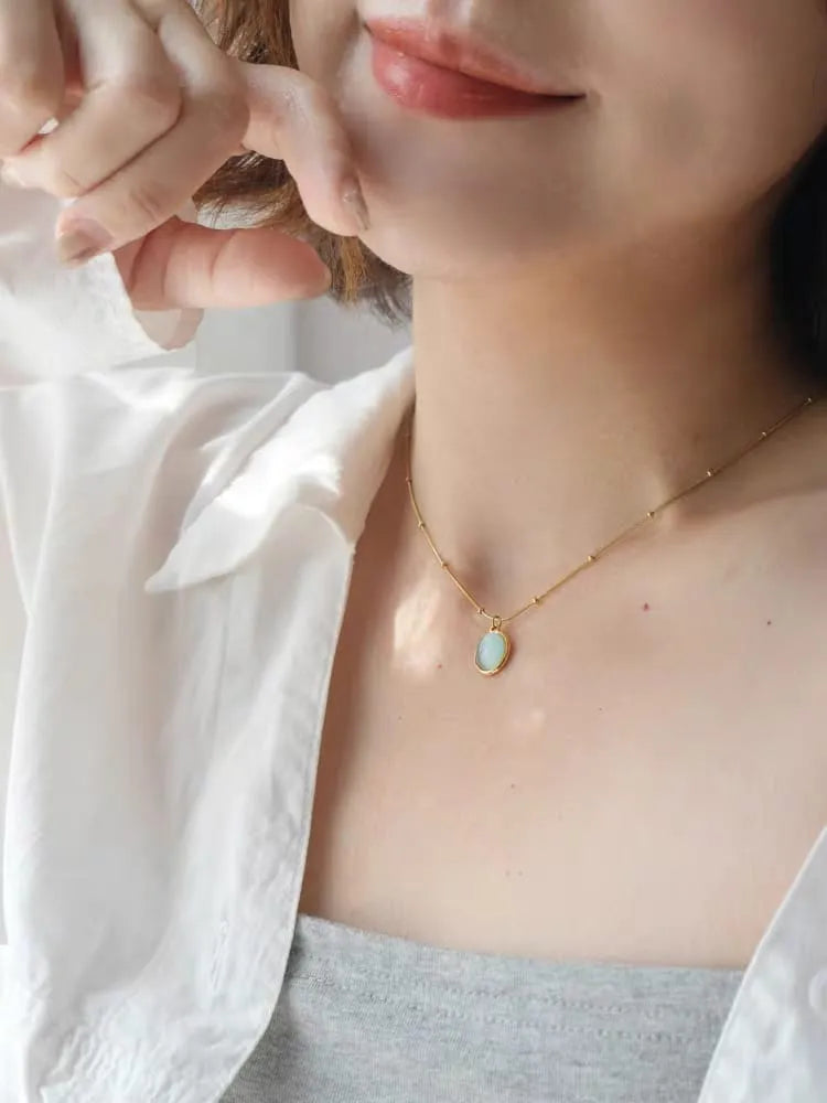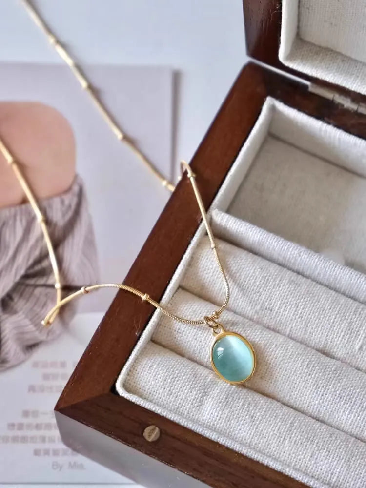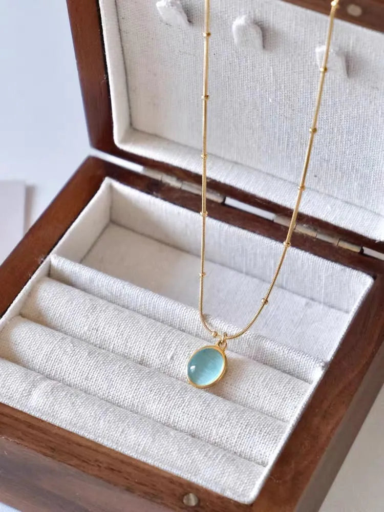 18K Gold Plated Oval Aquamarine Pendant Necklace