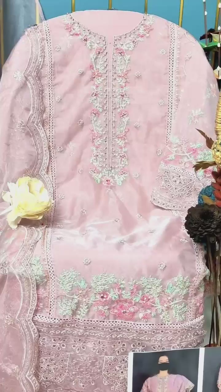 Premium Semi-Stitched Organza Suit with Hand Khatli Work - Semi Stitched