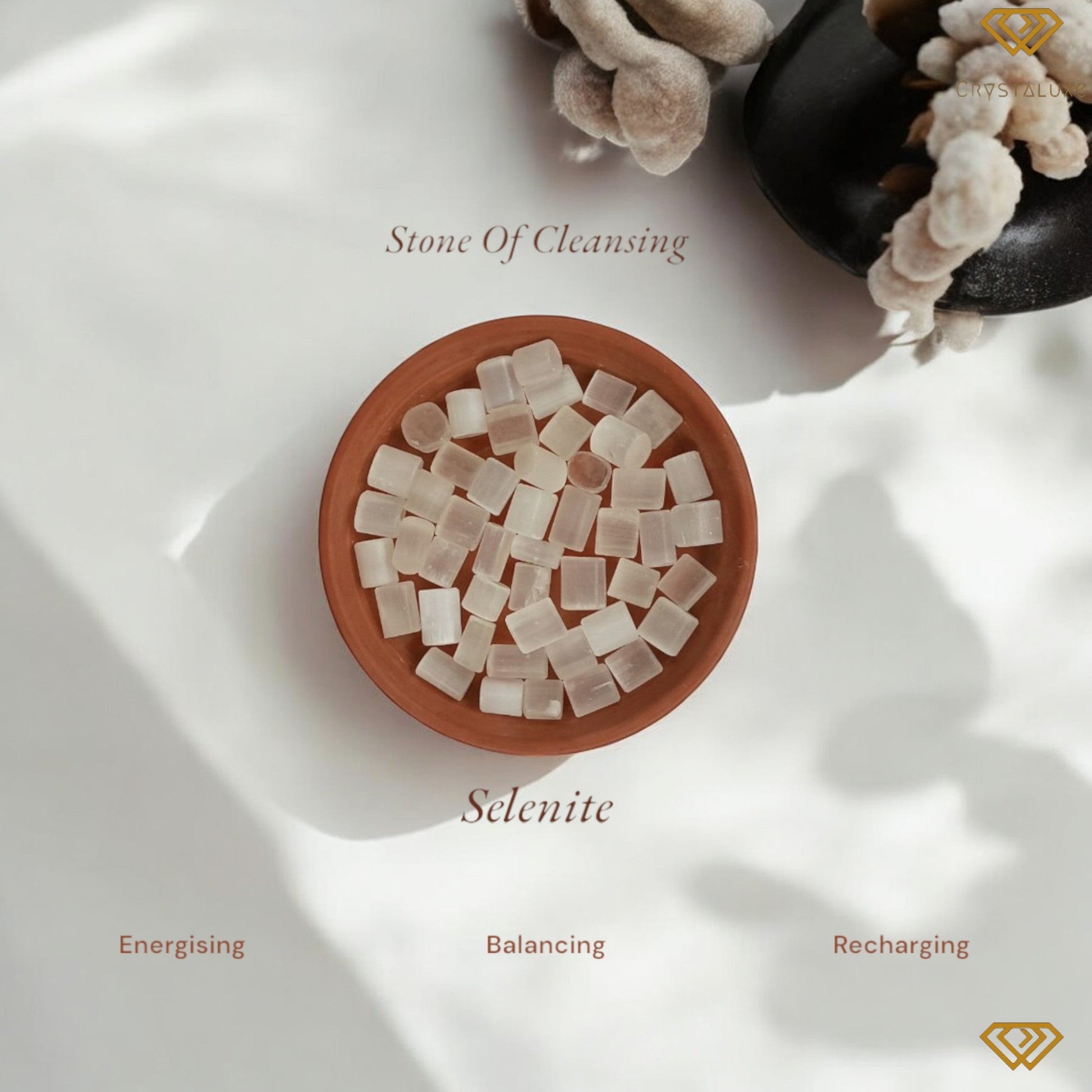 - Cleansing and Purification: Selenite is known for its ability to cleanse other crystals and spaces, making it an ideal tool for maintaining energetic harmony in your home.