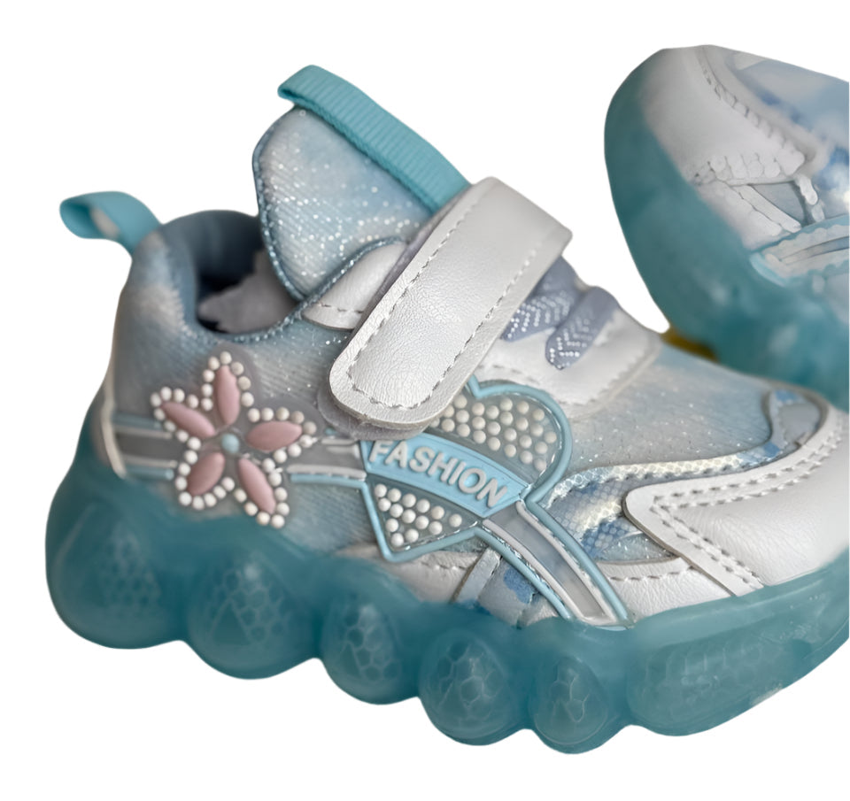 "Step into style & comfort with these adorable pastel blue kids’ sneakers!"